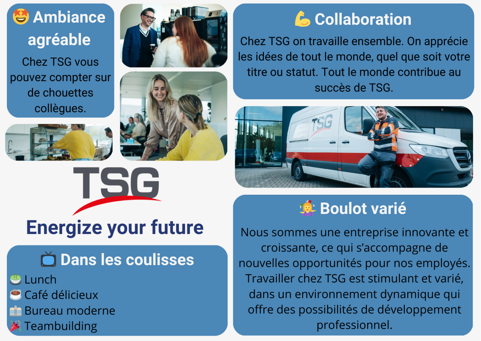 TSG (Technical Services Group) est la référence européenne des services techniques pour des solutions de mobilité responsable. Nous sommes le point d’entrée unique pour des solutions énergétiques et commerciales pour les stations de recharge, les stations-service et pour les opérateurs de flottes.