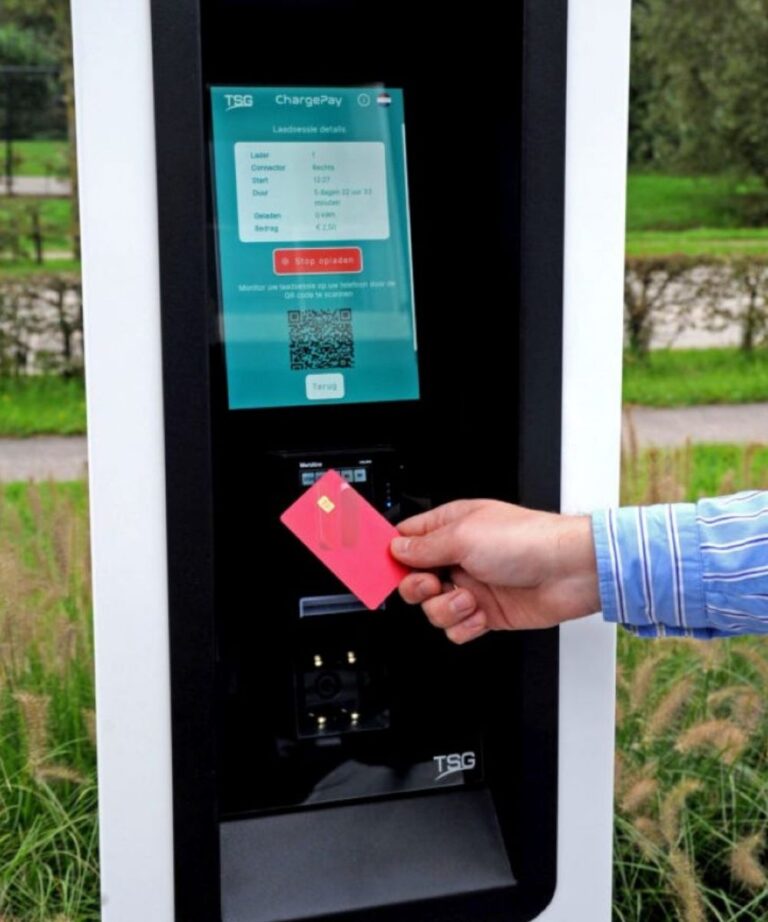 Les terminaux de recharge accessibles au public fonctionnent comme des automates de paiement classiques. Les clients ou visiteurs peuvent lancer et payer la recharge directement sur place, par carte de crédit, carte bancaire ou paiement mobile (Apple Pay / Google Pay), sans inscription préalable.