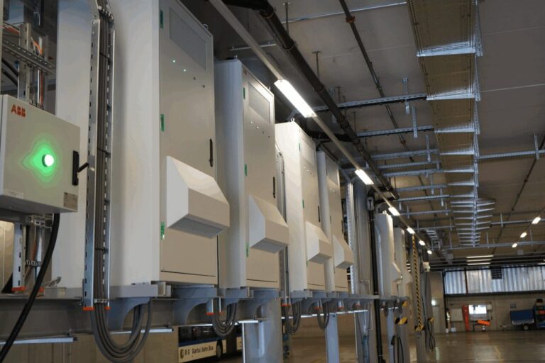 Un dépôt n’est pas une borne publique. Plusieurs véhicules doivent y être rechargés simultanément, de manière fiable et souvent dans des délais restreints. Dans les transports publics ou la logistique, la recharge nocturne est cruciale : chaque véhicule doit être prêt et pleinement chargé au début de son service.