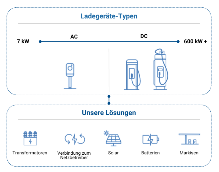Unser Ziel: leistungsfähige Ladeinfrastrukturen, optimierte Energienutzung und ein wirtschaftlich sowie nachhaltig betriebener Ladebetrieb.