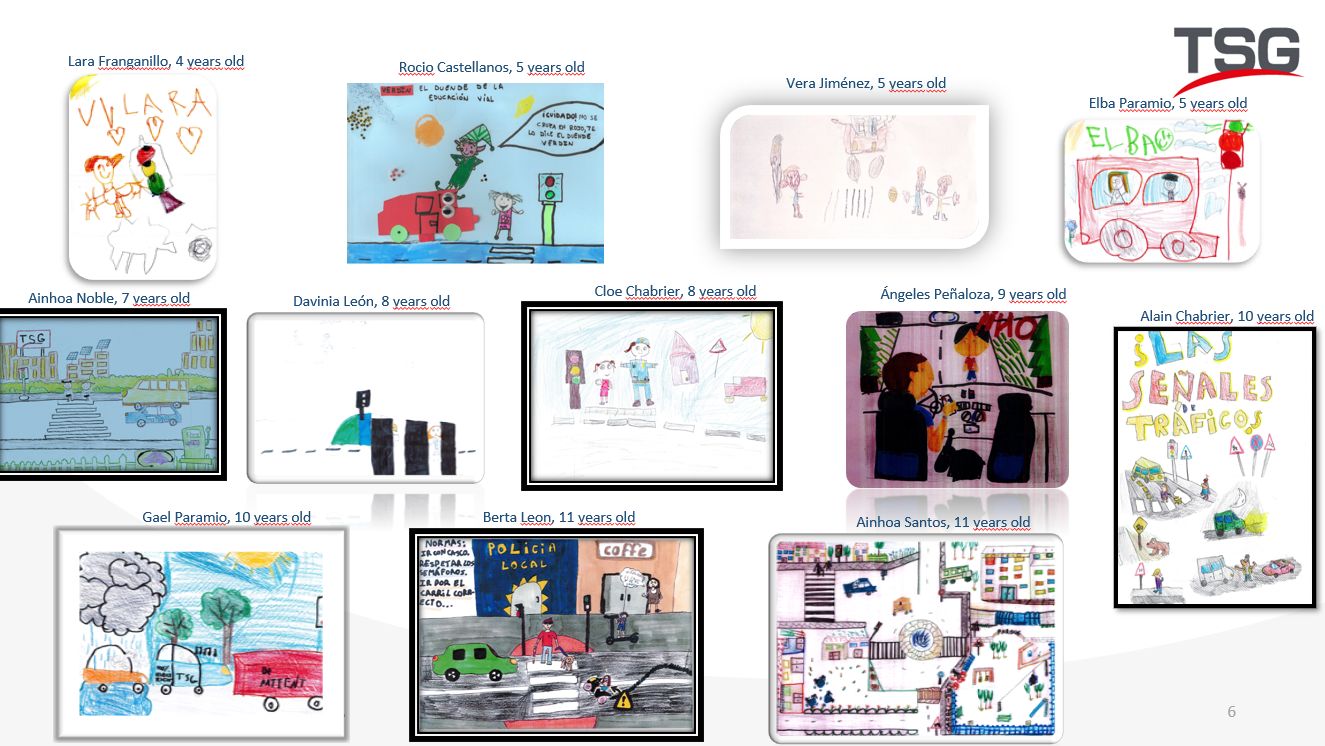 Porque la seguridad empieza en casa, organizamos un concurso de dibujo infantil sobre seguridad vial dirigido a hijos e hijas del personal de TSG Ibérica. La participación fue un éxito, y los dibujos no solo mostraron creatividad, sino también una comprensión profunda del valor de proteger la vida en la carretera.