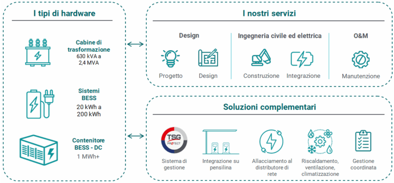 TSG semplifica questo processo, grazie alla propria competenza nella produzione di cabine elettriche (MT), nello studio dei collegamenti alla rete e nella gestione delle autorizzazioni. Con ingegneri qualificati e team locali attivi in tutta Europa, abbiamo già fornito oltre 600 cabine MT attraverso le nostre aziende specializzate nella media tensione: CD Elettrica, UCPC, HEMAG ed E2MS.