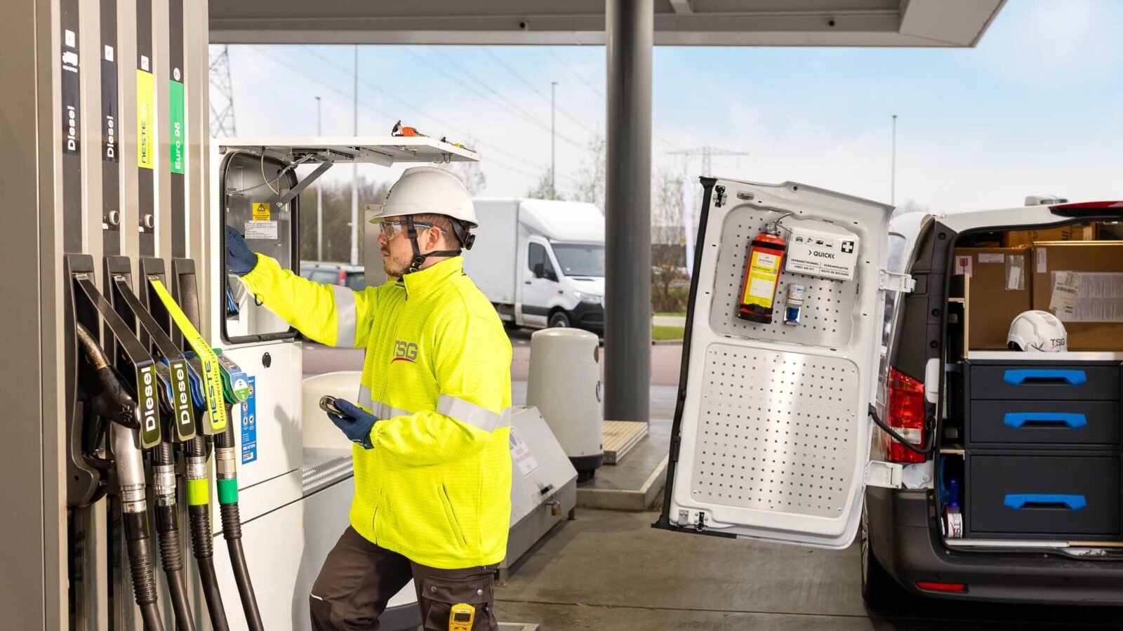 Vi ligger i framkant när det gäller implementering av förnybara bränslen och erbjuder HVO, biodrivmedel (biodiesel och bioetanol) och e-fuels för att hjälpa företag att minska koldioxidutsläppen och uppnå sina hållbarhetsmål. TSG spelar en nyckelroll när det gäller att stödja mobilitetshubbar, vagnparksoperatörer samt offentliga aktörer och infrastruktur när de integrerar bränslen med låga koldioxidutsläpp i sin verksamhet, främjar mer miljövänliga lokala leveranser och minskar sitt koldioxidavtryck.
