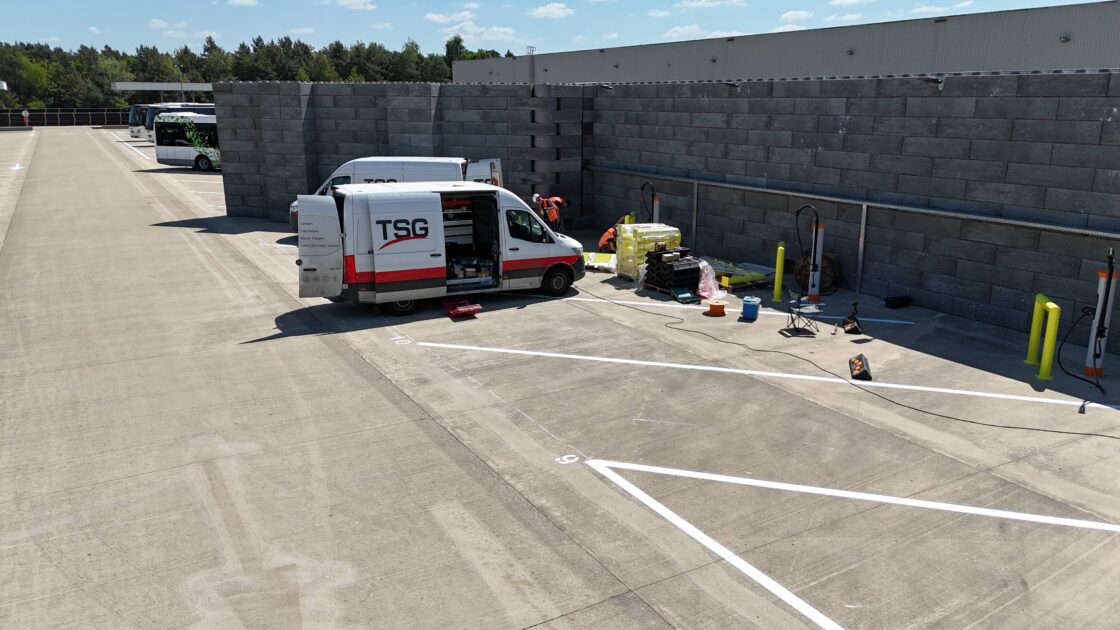 We managed the entire project — from initial concept to the delivery of a fully operational charging infrastructure. As the single point of contact, we coordinated all communication between stakeholders and ensured that both technical and financial criteria were met, giving Staf Cars full peace of mind. Even during the quotation phase, we provided clear visualisations, transparent pricing, and a concrete vision of the final solution. The installed infrastructure includes 13 DC charging satellites, 2 Kempower power units, a new high-voltage main cabin, and a secondary subcab. All components are centrally managed by the MINT smart energy management system, which optimises charging sessions based on bus schedules, operational priorities, and energy tariffs. It ensures vehicle readiness while actively managing load distribution to avoid peak demand and reduce energy costs. Safety was a key priority: TSG implemented collision protection, firewalls, and a 24/7 support system combining remote assistance with a nationwide network of certified technicians. The site is now future-proof, designed for scalability and ready to support fleet expansion without major reinvestment.
